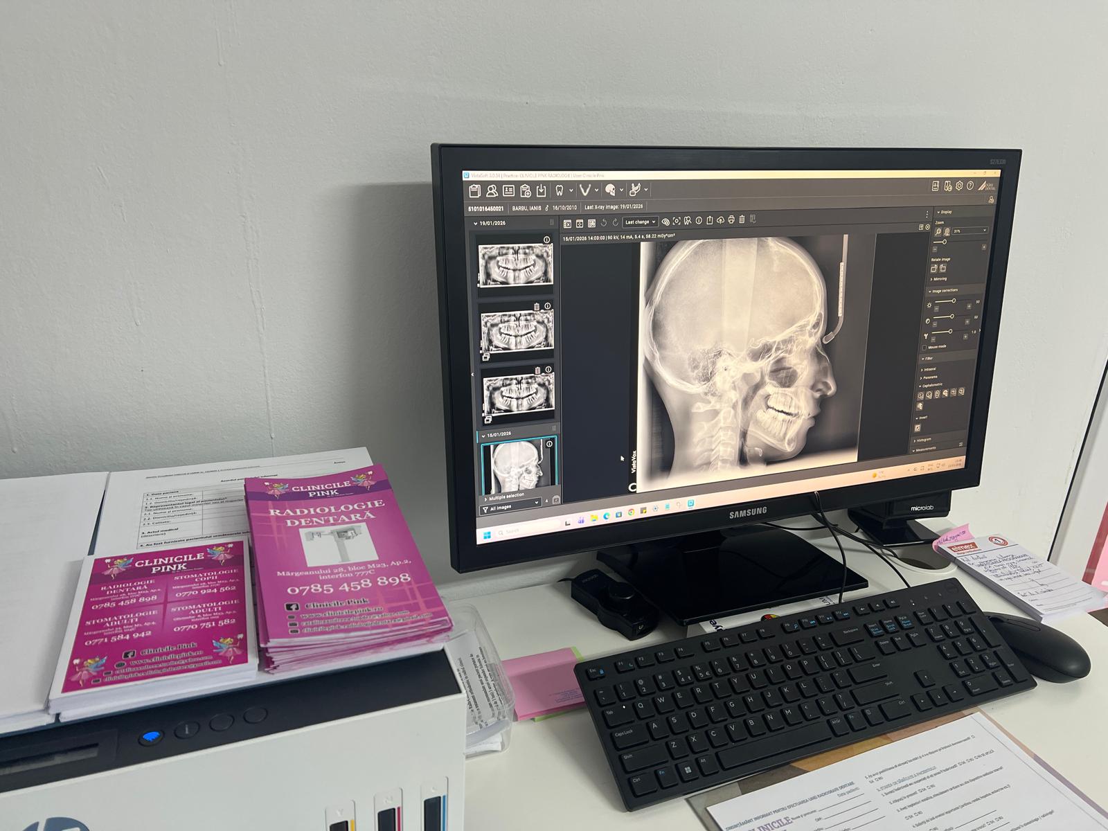 În clinica noastră realizăm dosarul ortodontic complet necesar inițierii tratamentului: radiografie panoramică, teleradiografii laterală și postero-anterioară, precum și fotografii intraorale și extraorale pentru un diagnostic ortodontic precis. Folosim echipamente moderne DurrDental și protocol standardizat pentru imagistică, iar datele sunt evaluate de medicii noștri specialiști pentru a întocmi un plan de tratament personalizat și eficient